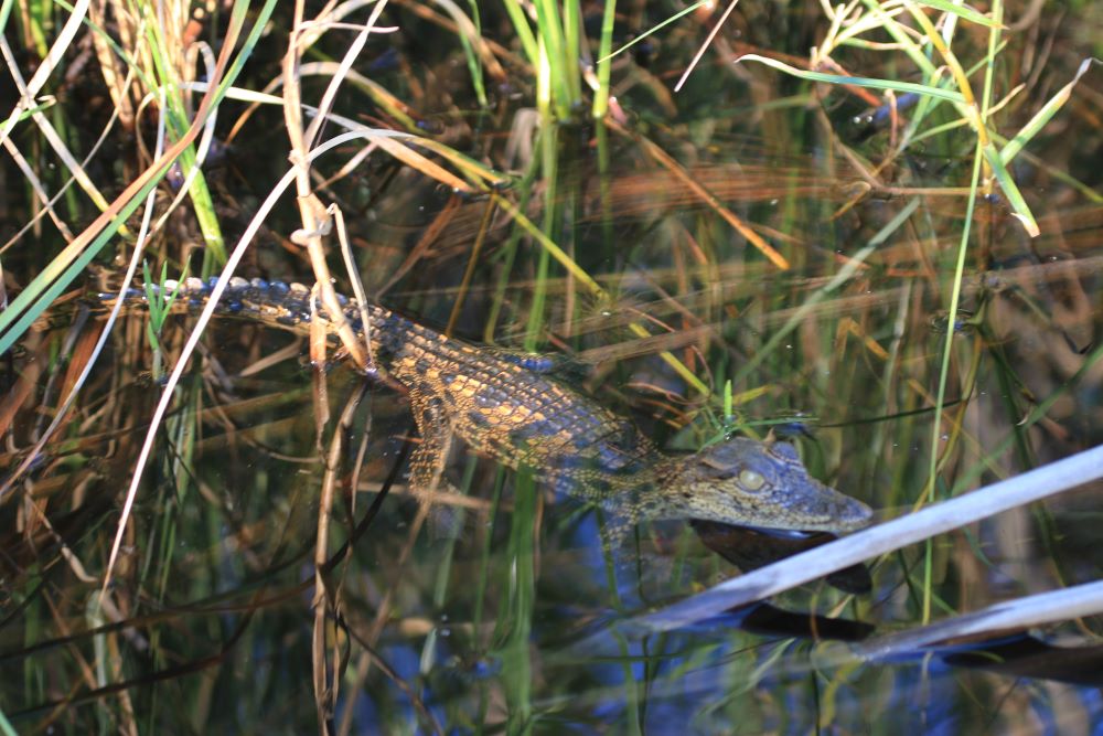 Nach den Savannen, Steppen und Sandgebieten der letzten Wochen haben die Lagunen, Sümpfe und die Flüsse Okavango und Kwando einen ganz besonderen, eigenen Reiz. Selbstverständlich steigen wir auch auf dem Kwando und dem Okavango auf ein Boot. Leider können wir diesmal kaum Elefanten am Ufer vom Wasser aus sehen und auch die Hippos machen sich als Fotomodelle etwas rar, doch entschädigen uns Wasserlilien, Krokodile, dabei auch ganz junge, nur ca.30 cm lang. Wenn wir uns vorstellen, dass daraus einmal eine Sechsmeterechse werden kann…