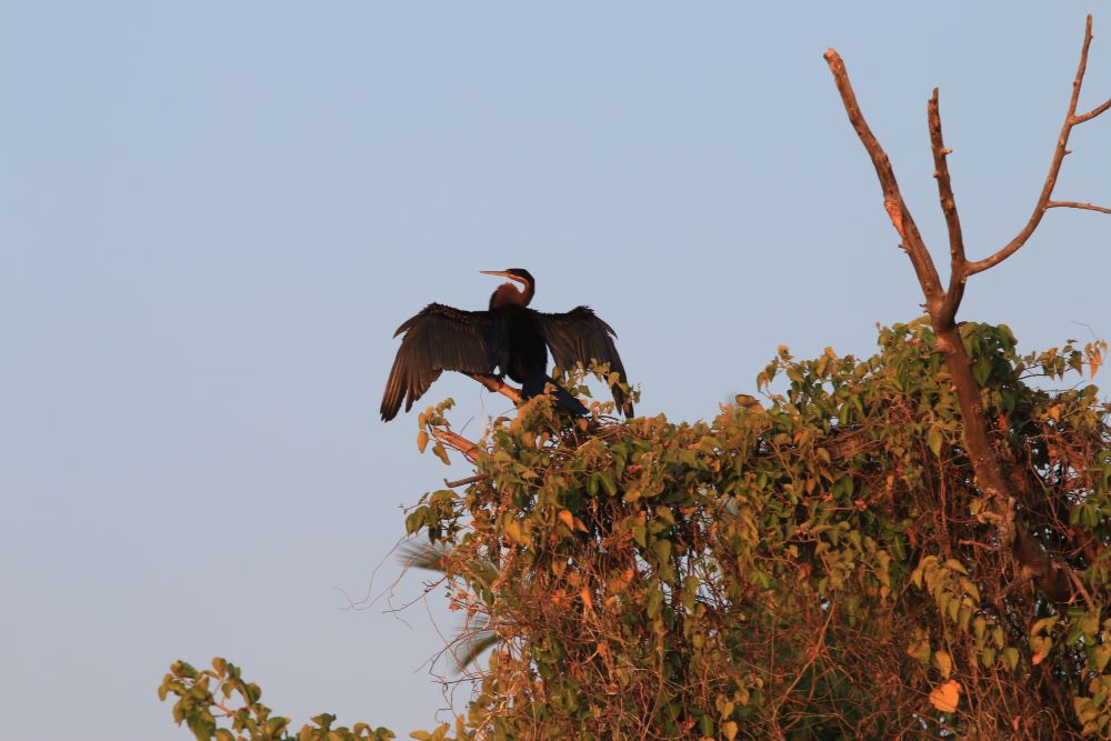 Der Mudumuparkanteil verläuft direkt am Kwando entlang, hier haben wir 2014 mit unserem Defender lange „Bootsfahrten“ unternommen und Tina und ich haben hier auch tolle andere Erinnerungen aus unserem ersten gemeinsame Afrikareise 2004. Im Kwando tummeln sich Hippos. Leider haben viele andere Tiere keine Lust auf eine Karriere als Fotomodell. Und ich muss noch mal was zum Auto sagen: Während einem Orientierungshalt bleibt der Wagen bis über alle Radnaben und bis über die Rockslider im Tiefsand stehen, er liegt vollkommen im Sand auf. Ich begutachte die Situation und denke bereits an Winde oder Sandbleche, aber: Nyati läßt sich einfach im ersten Gang untersetzt aus dem Loch herausfahren. Wir sind begeistert!