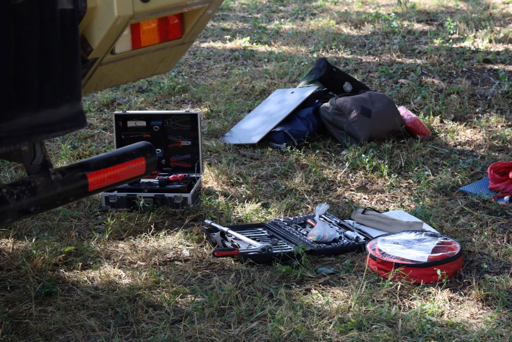 Dabei kommt unser eigener umfangreicher Werkzeugsatz zum Einsatz, denn unsere Reparaturcrew hat Ahnung, Improvisationsgabe, Einsatzfreude, aber kein Werkzeug…