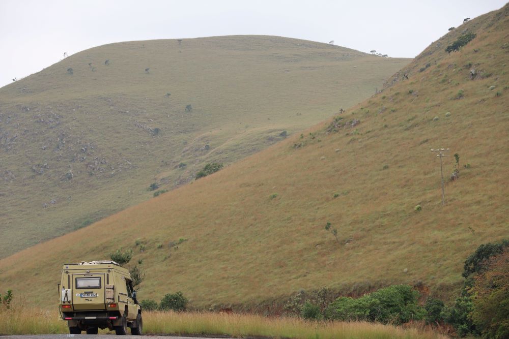 Von Nelspruit aus fahren wir nach Eswatini. Schon der Weg in das kleine Königreich mitten in Südafrika ist ein Erlebnis. Der Bulemba-Pass bekommt von Bernd 3 Sterne, die Fahrt macht sehr viel Spaß! Nach dem (sehr schnellen und unproblematischen) Grenzübertritt ist die Strecke dann nur noch für 4×4 machbar, also für Nyati überhaupt kein Problem. Es geht durch unendliche Pinienwälder, die hier für die Holz- und Papierproduktion angepflanzt wurden.