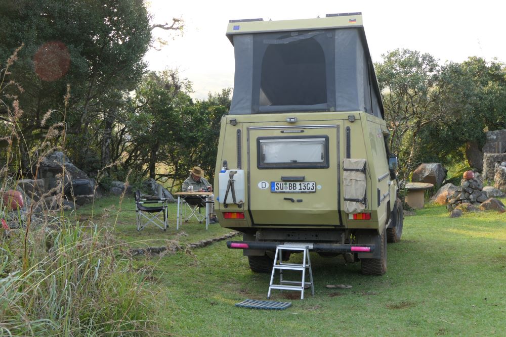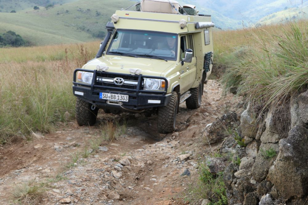 Unsere erste Unterkunft finden wir im Malolotja Nature Reserve. Die Campsites sind unglaublich schön angelegt. Aber leider braucht das Waschhaus dringend eine Überholung, es ist so dunkel und schmutzig, dass wir ausnahmsweise aufs Duschen verzichten. Lohnenswert ist der Aufenthalt hier aber in jedem Fall trotzdem, die Landschaft ist großartig, unsere Tour zu einem der Aussichtspunkte ein Genuß nicht nur für den Offroad-Fan. Das Nature Reserve kommt auf die Liste der Plätze, zu denen wir wiederkommen, es gibt hier noch viel mehr tolle Strecken zu (er)fahren.
