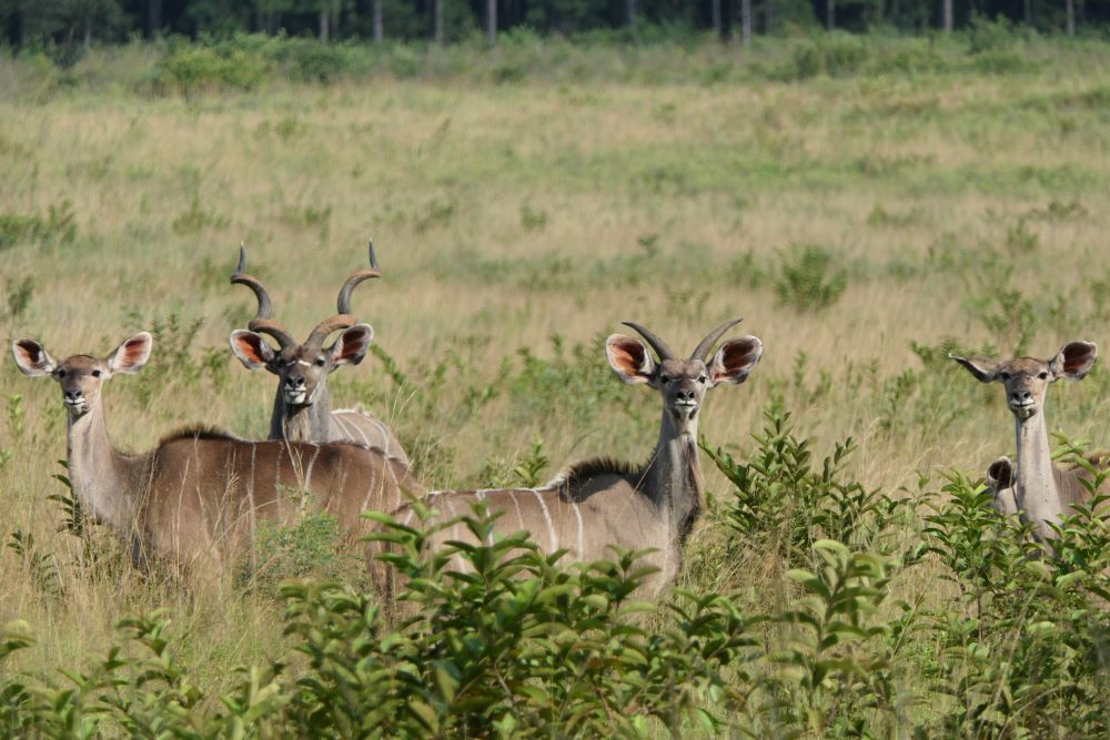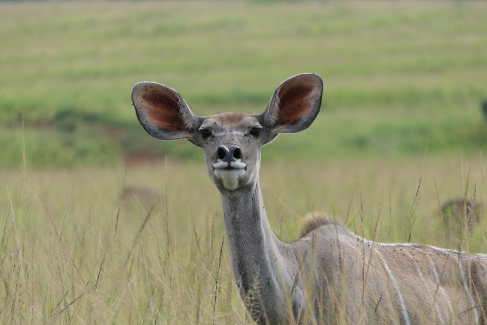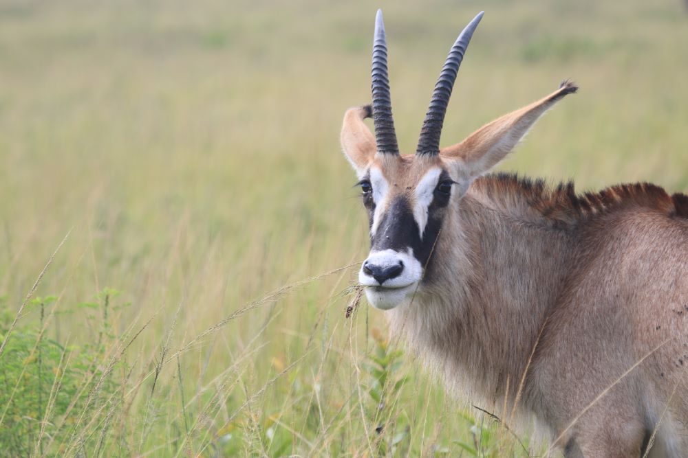 Hier machen wir mal wieder einen geführten Gamedrive, morgens geht es mit Caro auf den „Roan Drive“. Diese seltenen Antilopen leben in einem abgegrenzten Bereich des Parks, weil sie, nachdem diese Rasse in Südafrika fast ausgestorben war, aus England importiert wurden. Die ehemaligen Zootiere werden nun langsam an die Freiheit gewöhnt, benötigen aber besondere Aufmerksamkeit und Pflege. So ist z.B. ihr natürlicher Schutzmechanismus gegen Zecken nicht mehr vorhanden. Aktuell lebt die 3. Generation Roan im Park, das Projekt läuft gut!