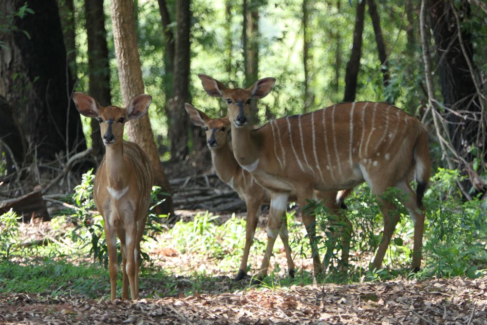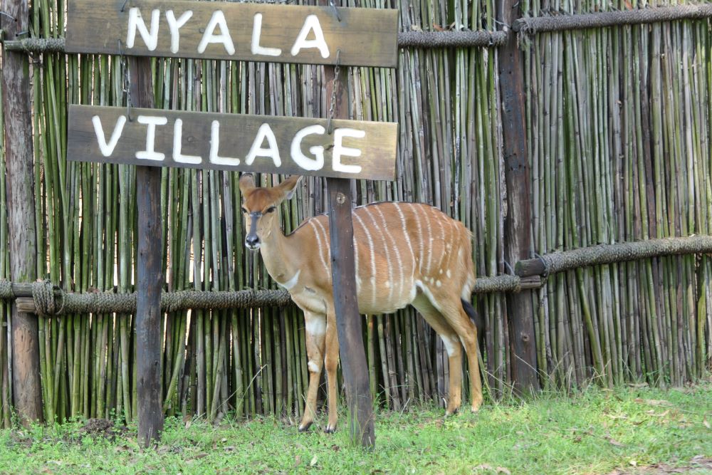 Die Hauptstadt Mbabane mit dem Sibebe Monolithen (der zweitgrößte der Welt nach dem Uluru) durchqueren wir nur auf dem Weg ins „Mlilwane Game Sanctuary“. Wir sind erstmal vorsichtig und buchen nur eine Nacht. Aber der Platz gefällt uns so gut dass wir verlängern. Abends gibt es am Restaurant eine Tanzvorstellung, und die wilden Tiere (Impala, Nyala, Warzenschweine) laufen in Streichelnähe durchs Camp. Einer der Nyala-Böcke legt sich zum Entspannen sogar direkt neben das Auto (und versucht mit uns zu frühstücken, was wir natürlich verhindern). Und das Waschhaus ist eines der besten, die wir auf der Reise hatten.