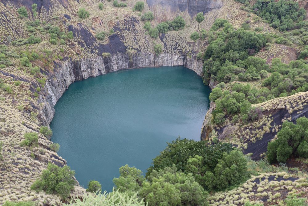 Nach 3 Tagen verlassen wir Eswatini, der Grenztritt wieder völlig unproblematisch, die Straße auf südafrikanischer Seite eine Herausforderung. Allerdings auch wieder durch großartige Landschaft, Berg und Tal, bis zu 2000 m hoch. Die Tagesetappe bis Ladysmith ist lang und anstrengend, belohnt werden wir mit dem schönen „Buller´s Rest Guesthouse“. Nach einer Übernachtung in Bloemfontein („Tredenham Boutique Hotel“, auch sehr schön) fahren wir weiter bis Kimberley ins „Oleander Guesthouse“. Die ehemalige Diamantenmine mit dem „Big Hole“ ist eine Besichtigung wert.