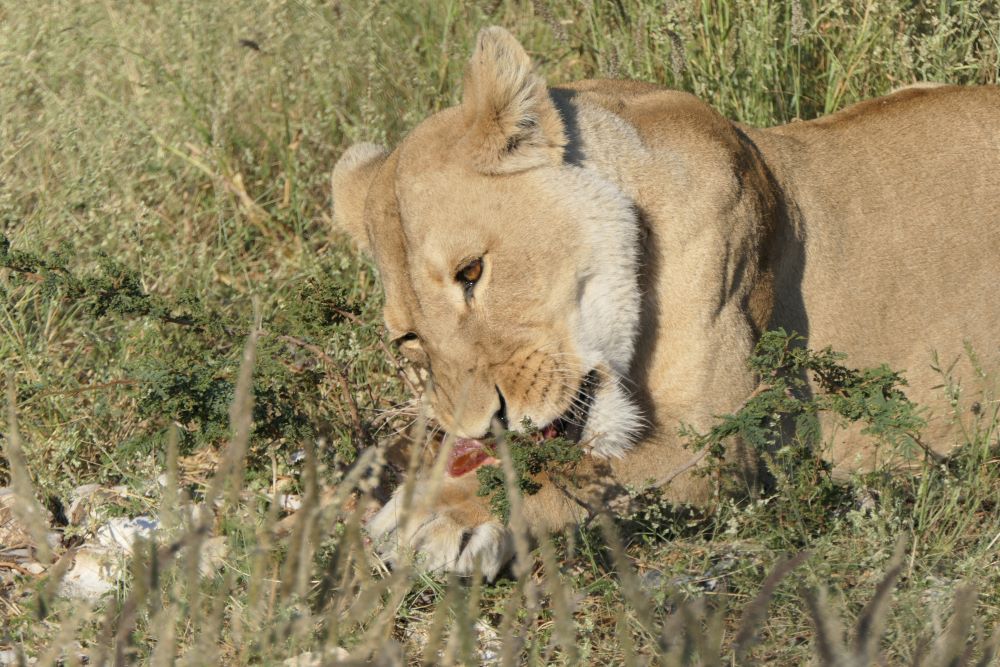 Unter die zweite Kategorie fällt die Aloegrove Safari Lodge bei Otjiwarongo, wo sich die gerade aus dem europäischen Aprilwetter kommende Tina sen an konstante Tagestemperaturen von ca. 35° gewöhnt und sich mit einem Leoparden, einer Löwin und einem Gepard anfreundet. Aloegrove ist eine zertifizierte Auffangstation, nachdem die namibianische Regierung erfreulicherweise die – regelmäßig unsachgemäße – Haltung von Raubkatzen in Privathand verboten hat. Katzen, die von Menschen gehalten wurden, sind in der Wildnis nicht mehr überlebensfähig und stellen durch den Verlust ihrer natürlichen Scheu vor Menschen eine Gefahr dar. So müssen sie entweder getötet werden oder können in einem zertifizierten Reservat unter naturnahen Bedingungen ihre neun Katzenleben aufbrauchen.