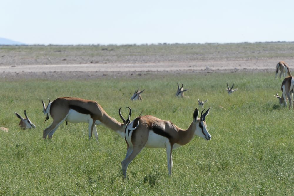 Etosha – der größte Nationalpark Namibias…wie üblich: Legionen von Springböcken, Zebras, Gnus.