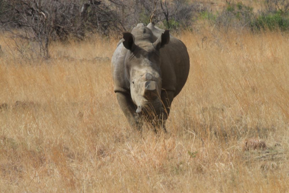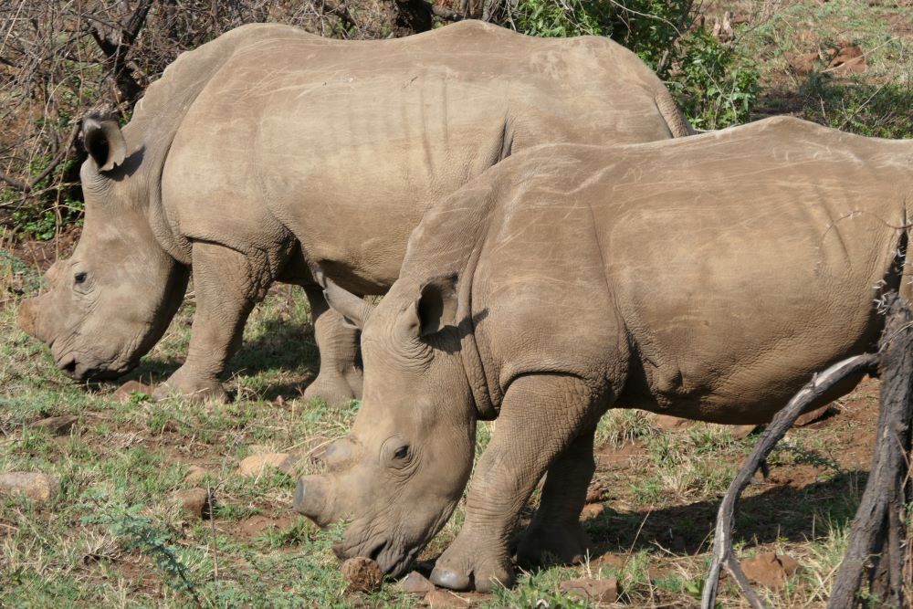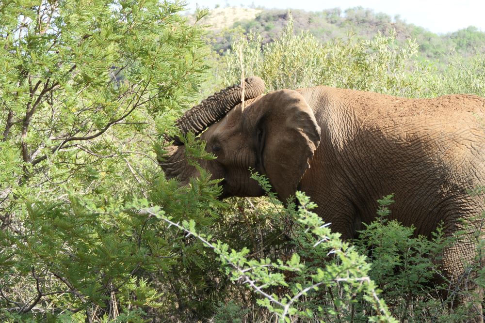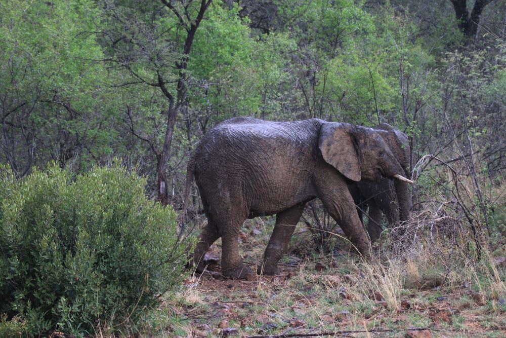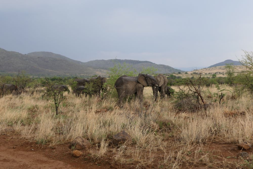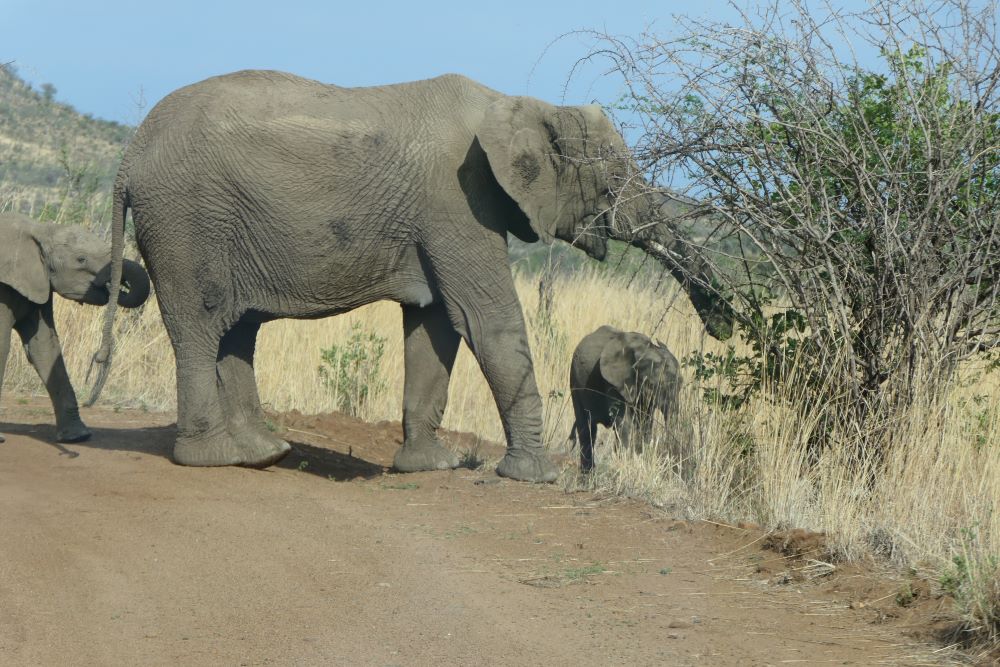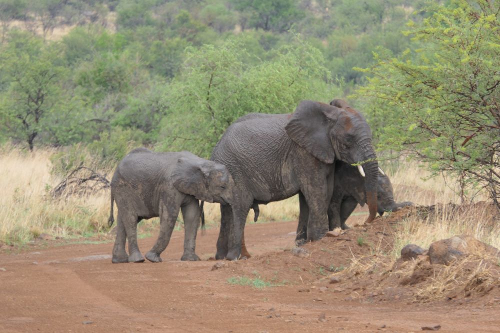 Der Park begeistert uns mit seiner weiten, bergigen Landschaft und der Tierwelt. Schon kurz hinter dem Gate treffen wir auf die ersten Elefanten inkl. mehreren Kälbern. Direkt neben der Haupstraße spazieren Breitmaulnashörner entlang. Man hat ihnen die Hörner abgeschnitten. Für die Selbstverteidigung und auch optisch natürlich nicht optimal, aber beim enormen Grad der Wilderei rettet ihnen diese Maßnahme wahrscheinlich das Leben.