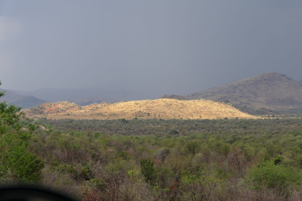 Schließlich erreichen wir das Südtor des Pilanesberg Nationalparks, und fast zeitgleich beginnt es zu regnen. Die Landschaft ist in kurzer Zeit wie verwandelt, das Licht und der Duft der Erde, einfach unbeschreiblich!