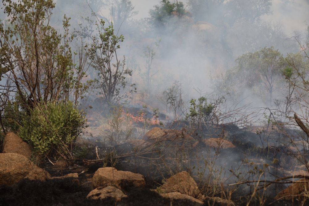 Sehr beeindruckend auch ein kontrolliertes Buschfeuer. Wir sind erst nicht sicher, ob das wirklich kontrolliert ist, treffen dann aber auf Ranger, die alles im Blick haben und uns beruhigt weiterfahren lassen.