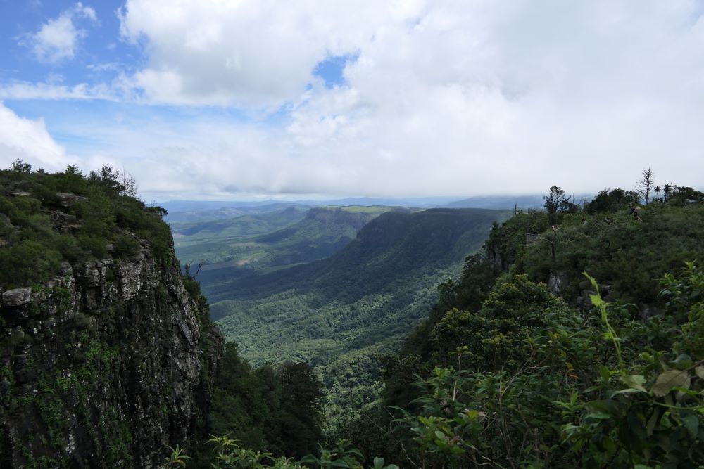 Von dort machen wir einen Abstecher nach Norden in das Örtchen Sabie. Trotz Regen und Nebel ist die Rundfahrt über Long Tom Pass und Robbers Pass nach Pilgrims Rest und Graskop sehr beeindruckend. Am nächsten Tag dann strahlender Sonnenschein, wir fahren zu „God´s Window“, und da ist der Name Programm…die Aussicht vom Drakenberg Escarpment in die Ebenen des Louwfeld ist einfach unglaublich.