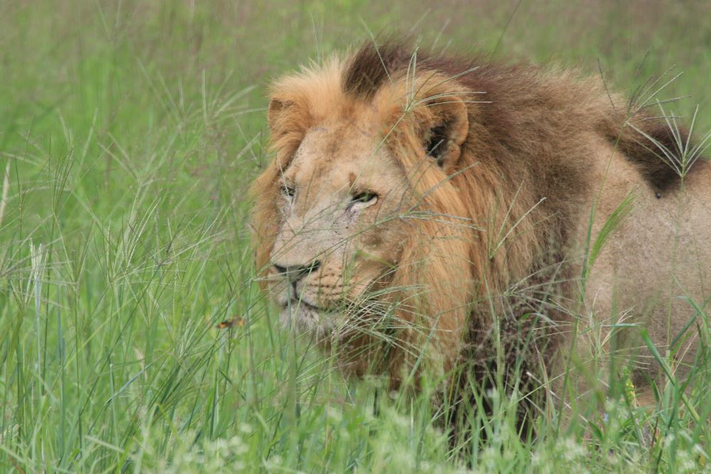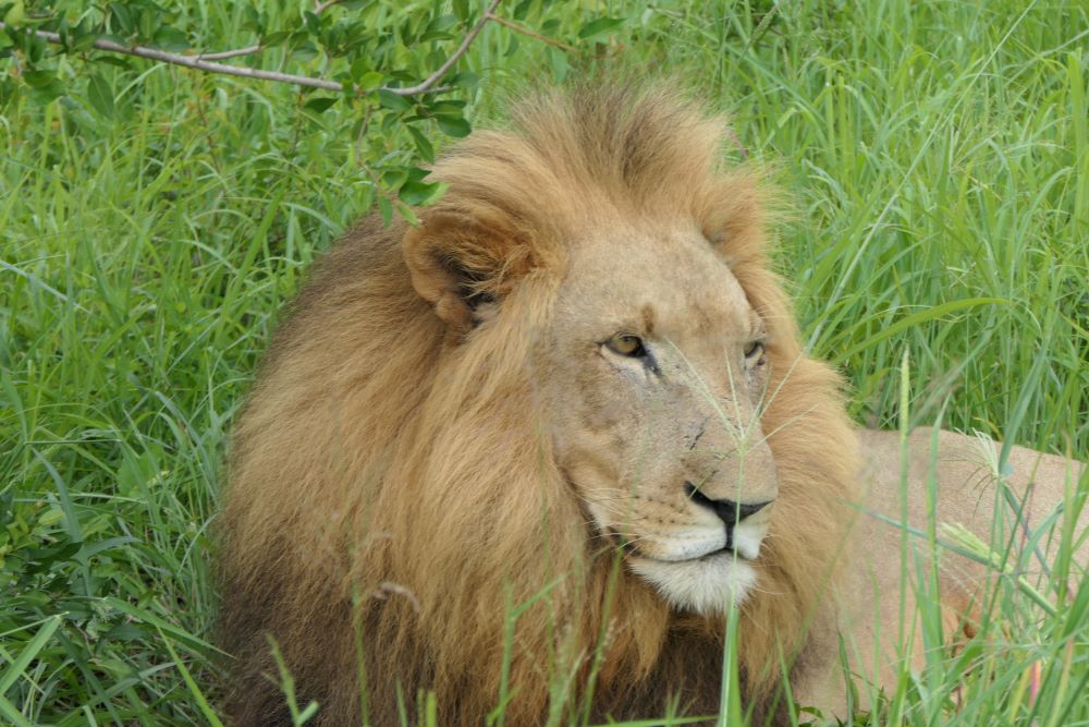 Noch mehr Nashörner gibt es beim Game Drive am nächsten Morgen zu sehen, vorher allerdings…zwei Löwen! Ich persönlich habe noch nie welche sooo nah gesehen, sie liegen ca. 2 Meter vom offenen Safariauto entfernt. Sind zum Glück ganz entspannt!